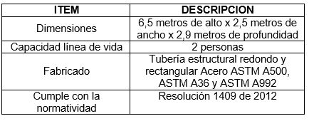 Diseño y fabricación de la estructura para labores de carpe, descarpe, cargue, descargue desde camionetas hasta tractomulas, además la revisión, lavado de camiones cisterna y cualquier otra labor que represente trabajo en alturas. Fabricado en acero ASTM A500, ASTM A36 y ASTM A992