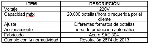 El ordenador de botellas plásticas, proporciona mayor eficiencia en líneas de embotellado, ordena las botellas a través de un movimiento rotatorio y las orienta a la banda transportador, alimentando de manera automática. Fabricado en acero SAE 304 y cuenta con capacidad de 20.000 botellas por hora o requerida por el cliente.