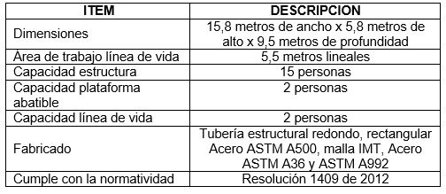Diseño y fabricación de plataforma a la necesidad del cliente, para labores de inspección. fabricada en acero ASTM A36, ASTM A500 y ASTM A992. Brindando una plataforma segura, estable y firme, para realizar el trabajo en alturas.